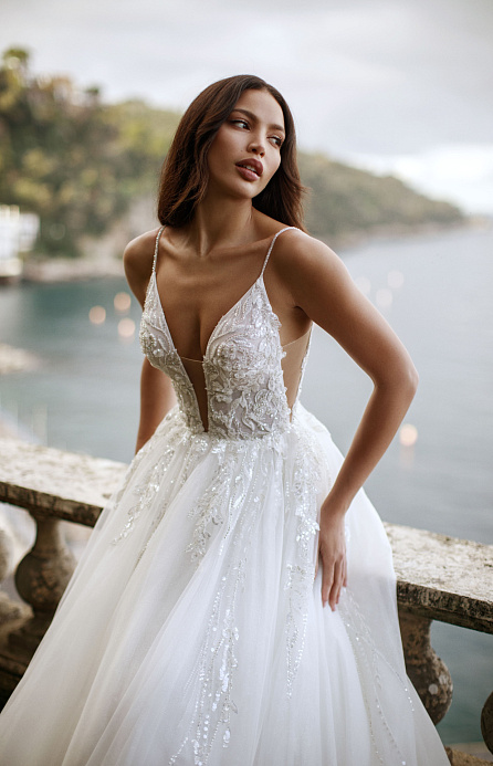 Сверкающее свадебное платье на тонких бретельках
