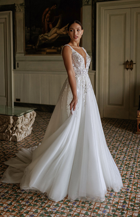 Роскошное свадебное платье с многоярусной юбкой