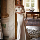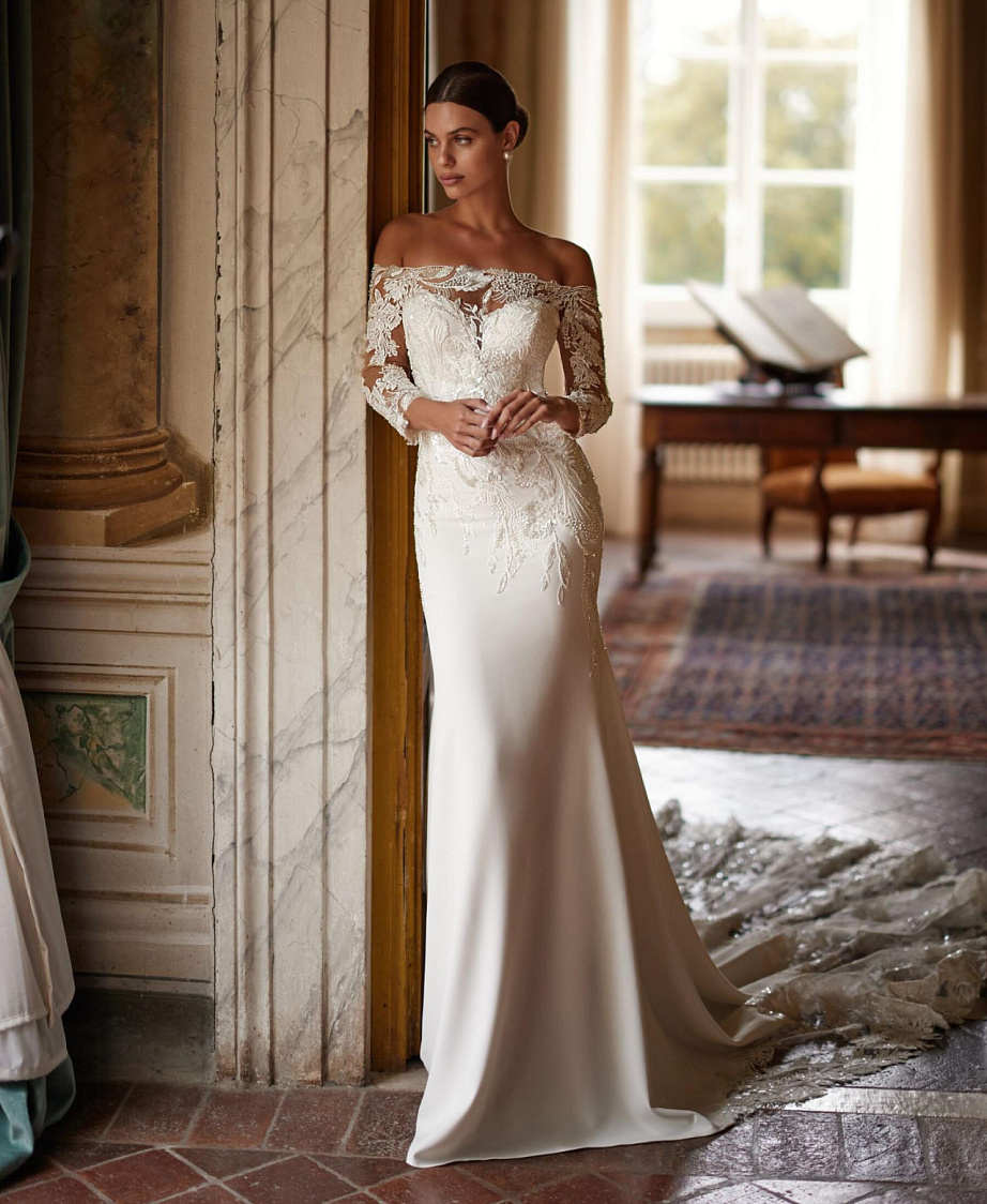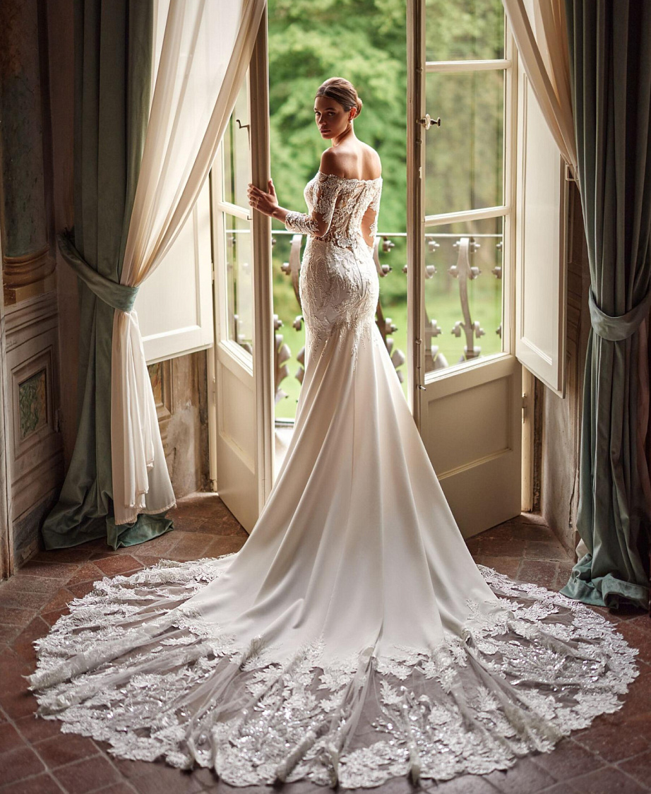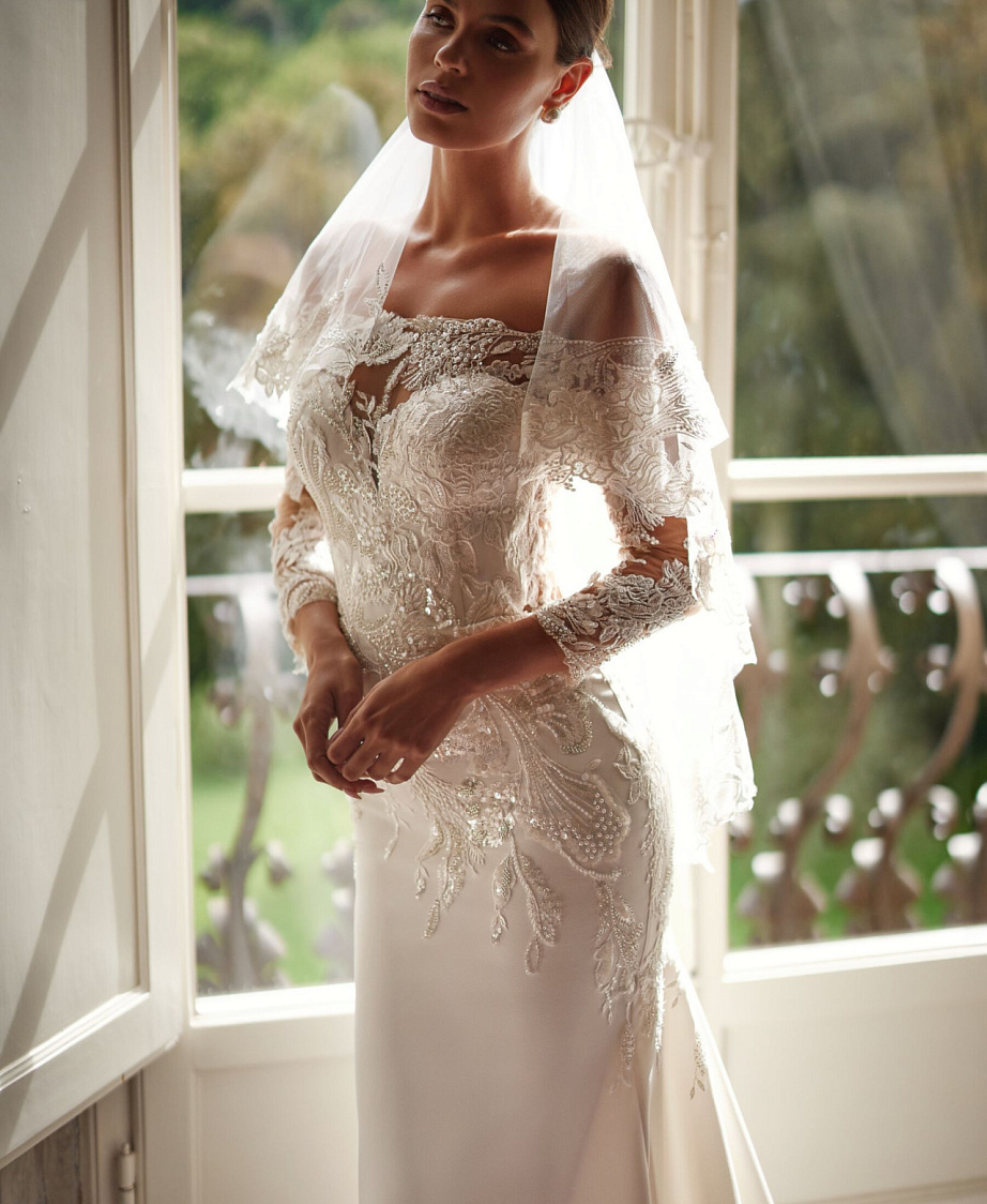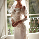 Роскошное свадебное платье с кружевным шлейфом и рукавами