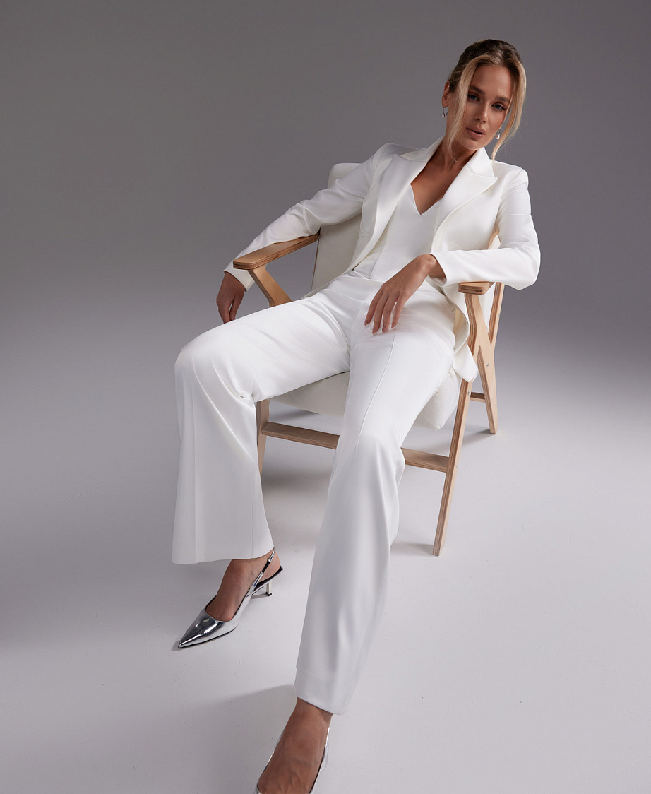 Стильный свадебный костюм-тройка из стрейч атласа фото