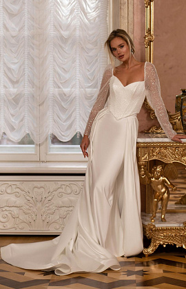 Свадебное платье с атласной юбкой и жемчужным корсетом