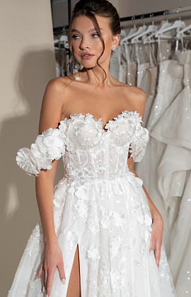 Нежное свадебное платье с декором из 3Д цветов