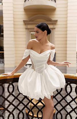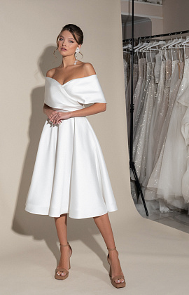 Короткое свадебное платье со спущенными плечами