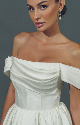 Атласное свадебное платье со спущенными плечами